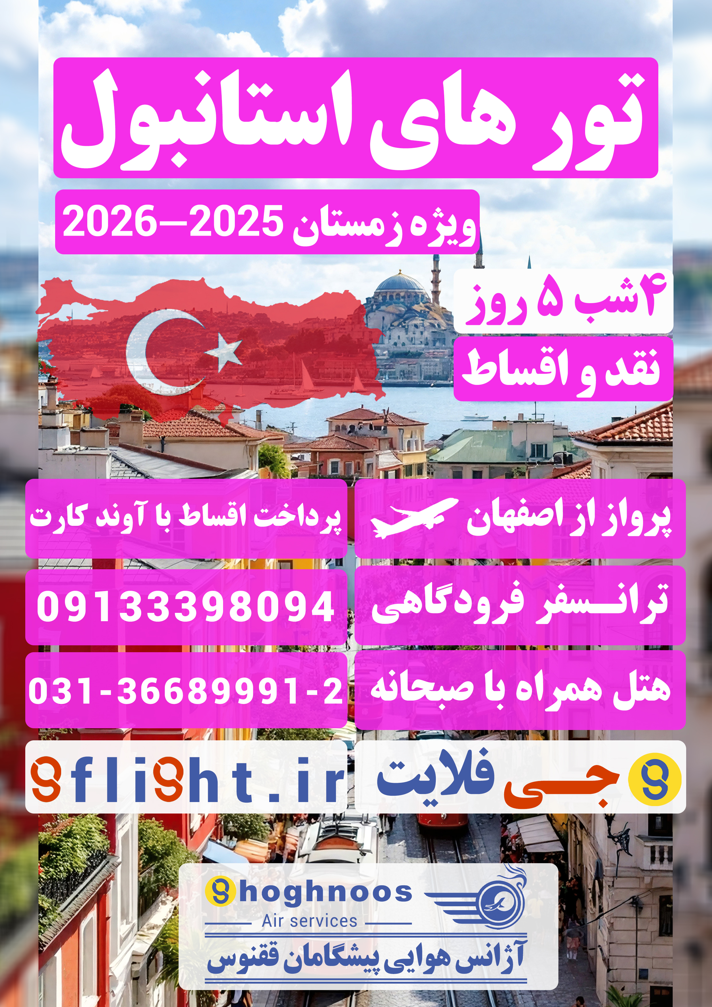 آژانس هوایی پیشگامان ققنوس مجری تور های ویژه استانبول_ جهت رزرو تور با کارشناسان ما در ارتباط باشید 36689992-031