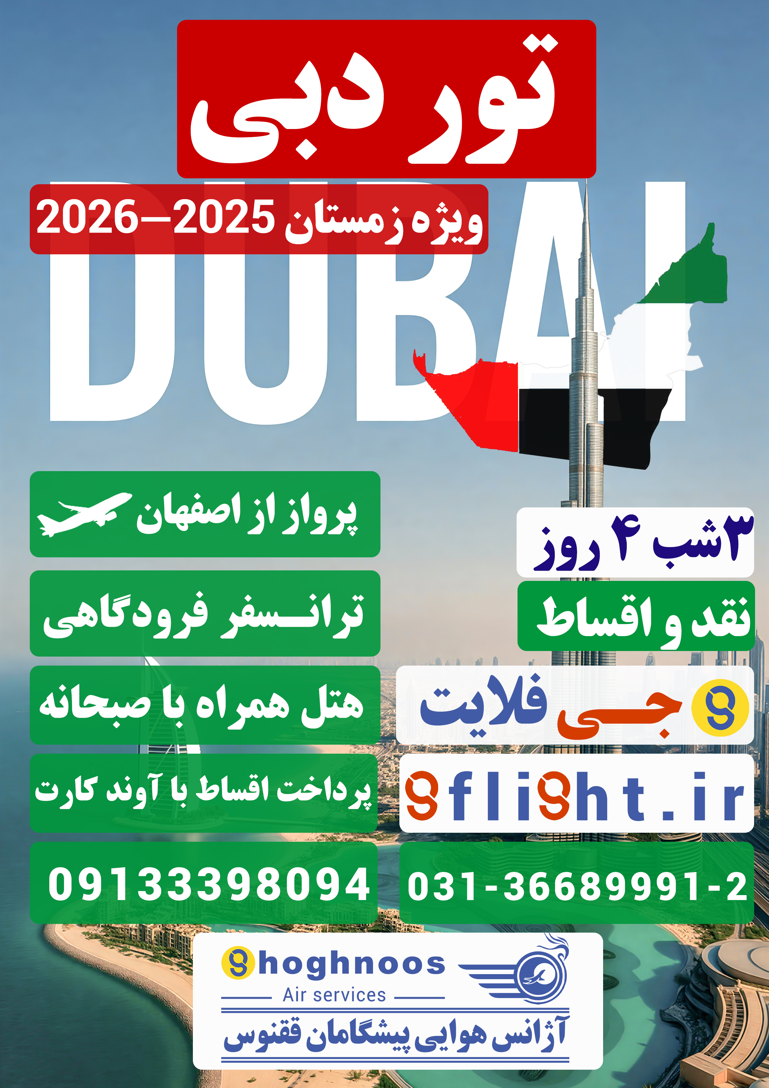 آژانس هوایی پیشگامان ققنوس ارائه دهنده تور های ویژه امارات متحده (دبی) ، برای اطلاعات بیشتر و رزرو تور با کارشناسان ما در ارتباط باشید. 36689992-031