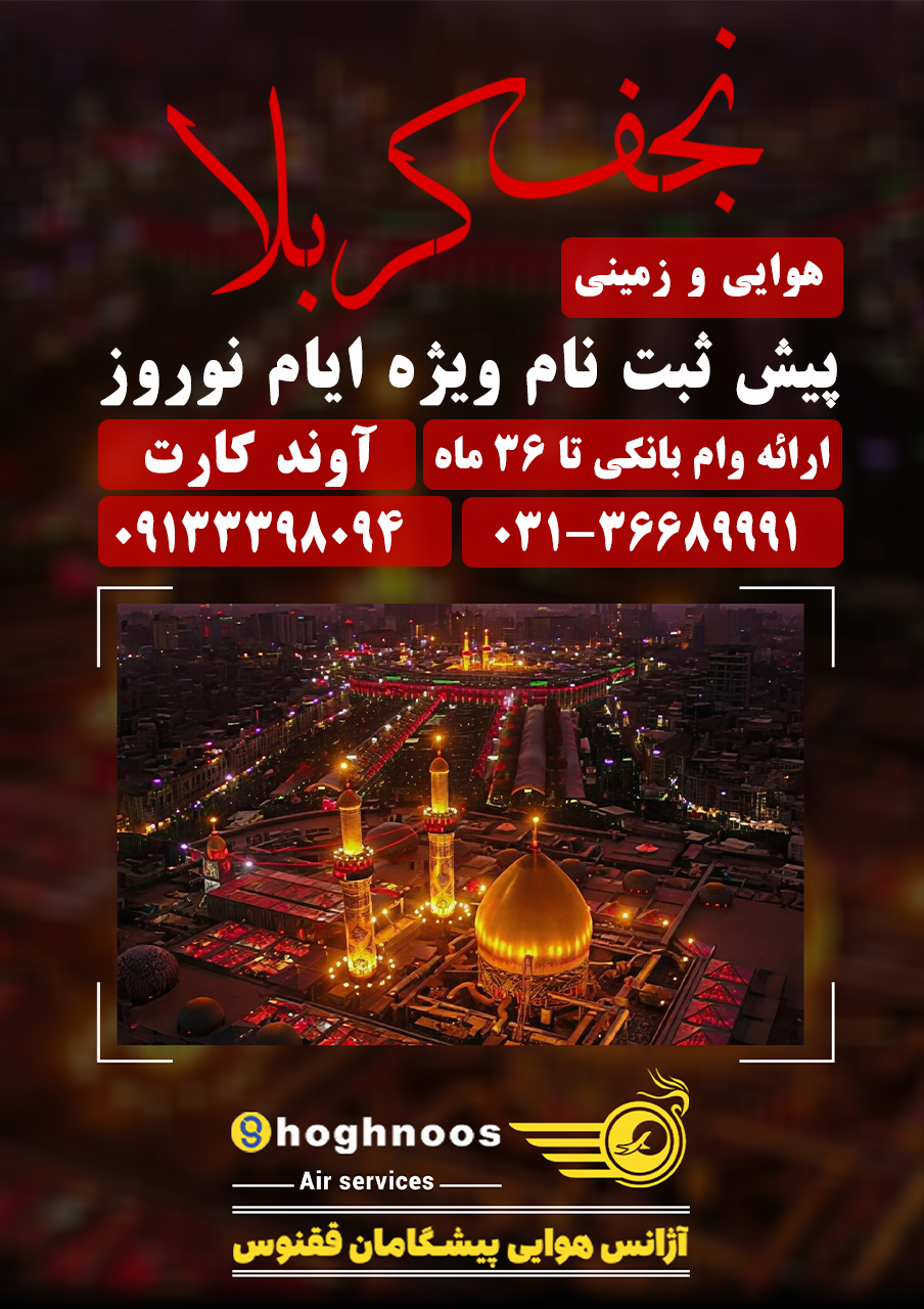 آژانس هوایی پیشگامان ققنوس ارائه دهنده تور کربلا، هوایی و زمینی، قیمت ویژه، نقد و اقساط. 36688694-031